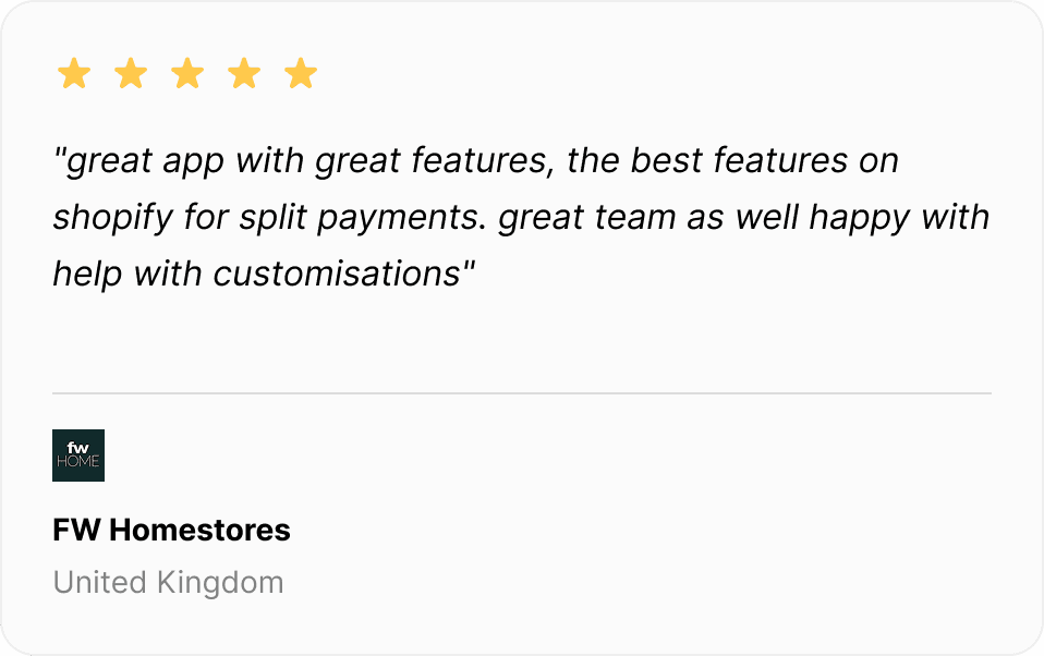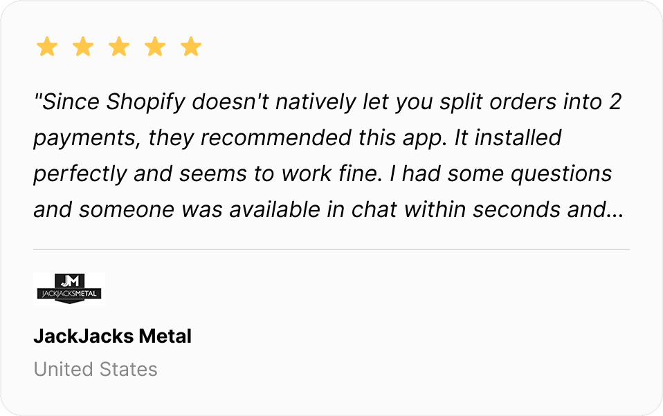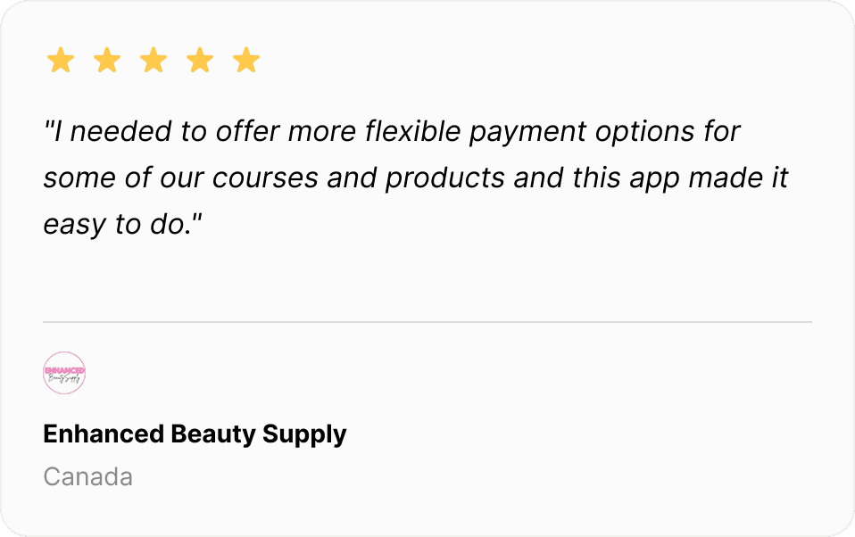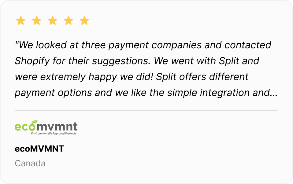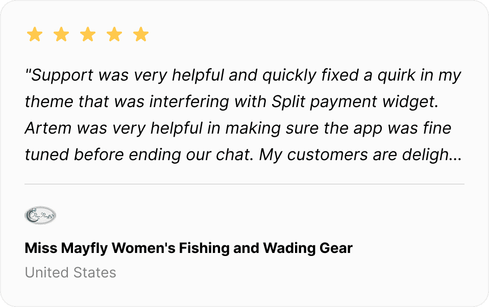 Join thousands of Shopify merchants who use Split Payment accept payments with flexible options.
